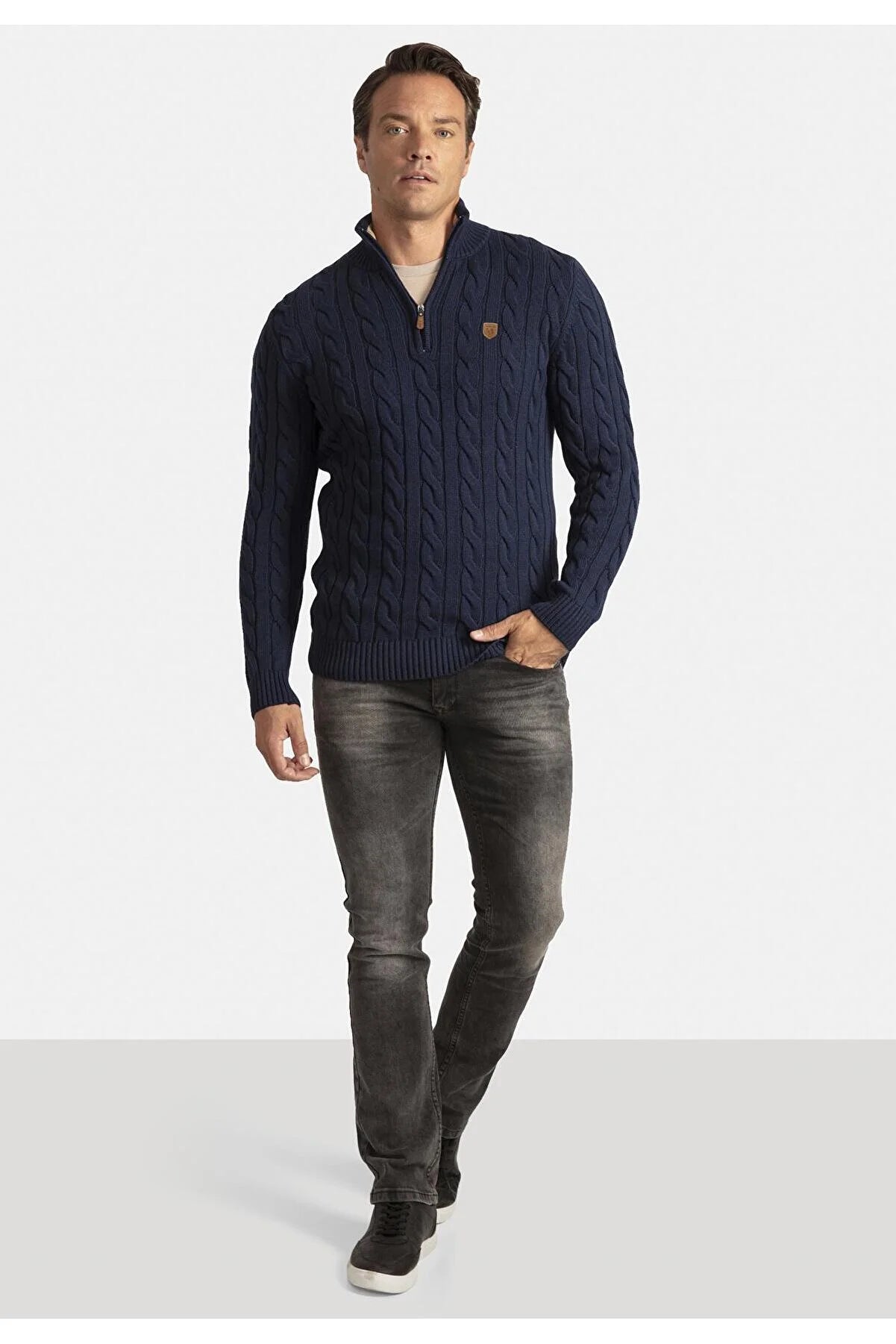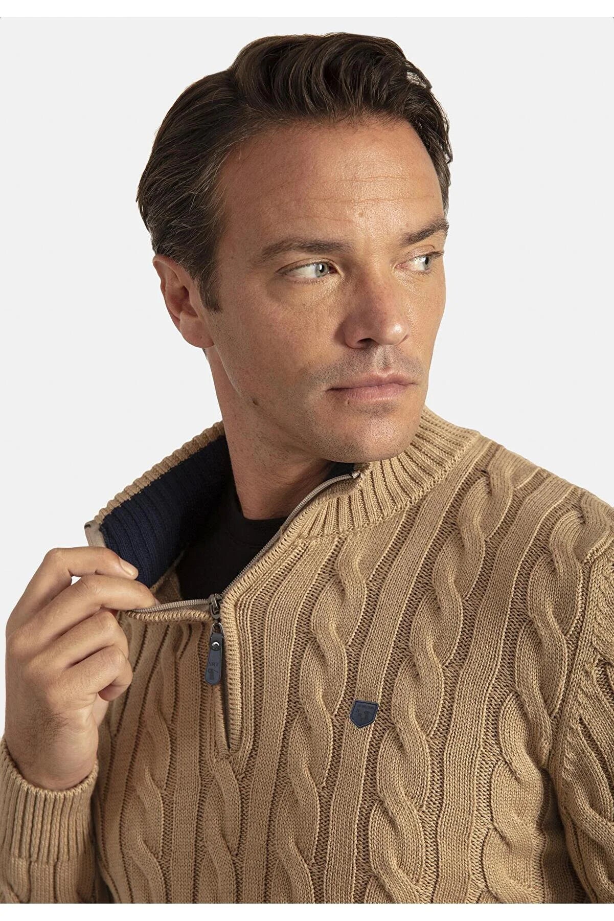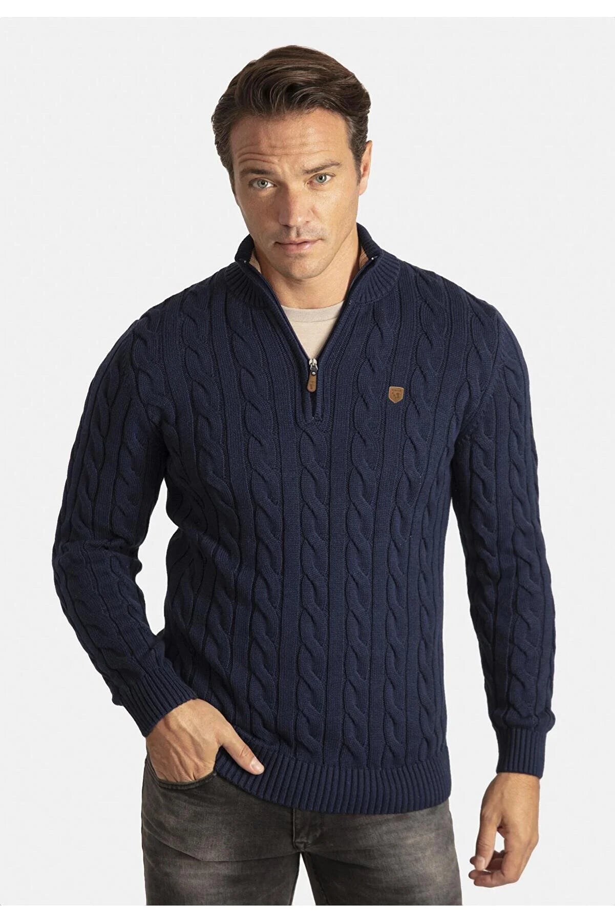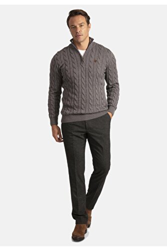 Detailed Men's Half Zipper Sweater