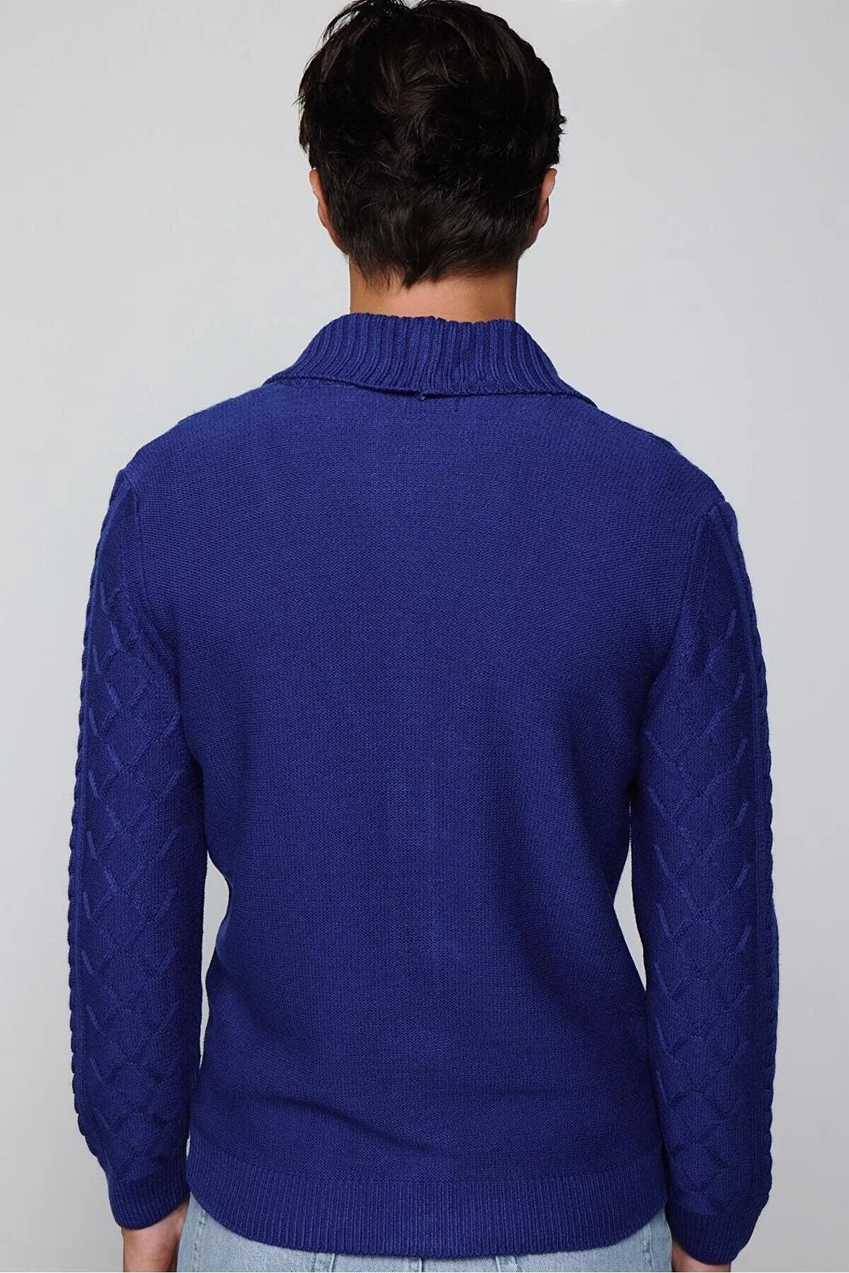 Slim Fit Patterned Soft Textured Buttoned Blue Men's Cardigan