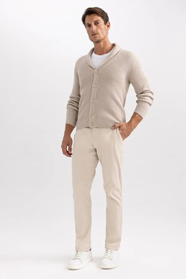 - This Standard Fit cardigan features a sophisticated straight pattern in a timeless beige color, perfect for any occasion.